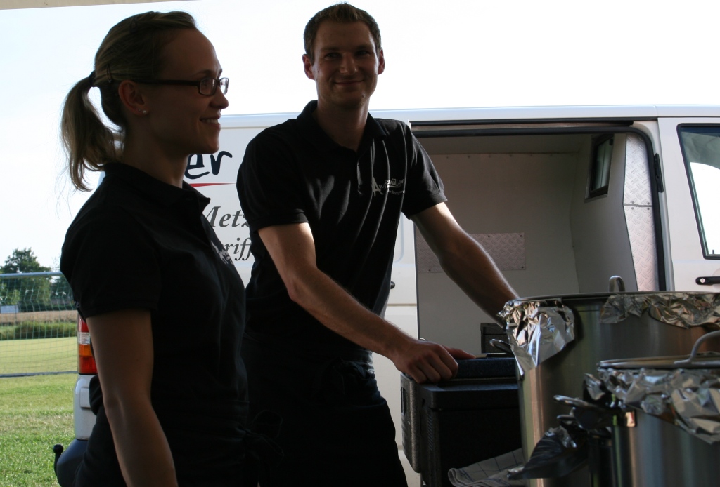 Nach einem sportlichen Höhepunkt unter sengender Nachmittagssonne und einer kurzen Regeneration trafen sich Spieler und zahlreiche Zuschauer sowie "sonstiger Anhang" zur abendlichen Feier.